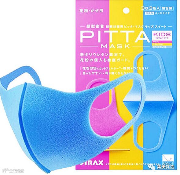 日本原装进口PITTA MASK口罩儿童款粉黄蓝精美透气保暖*3枚入