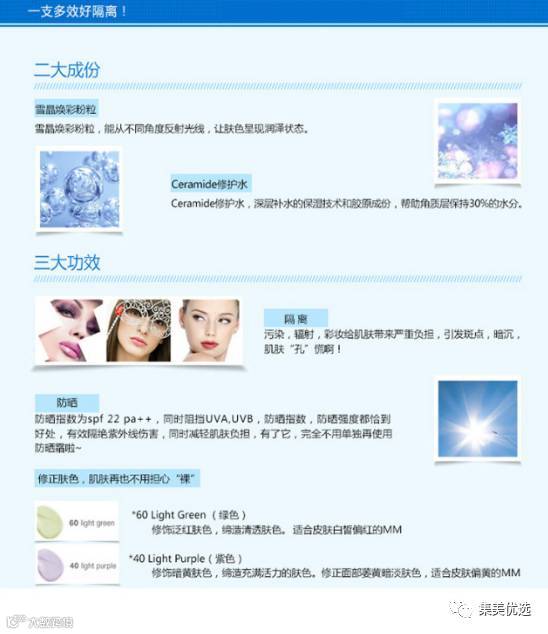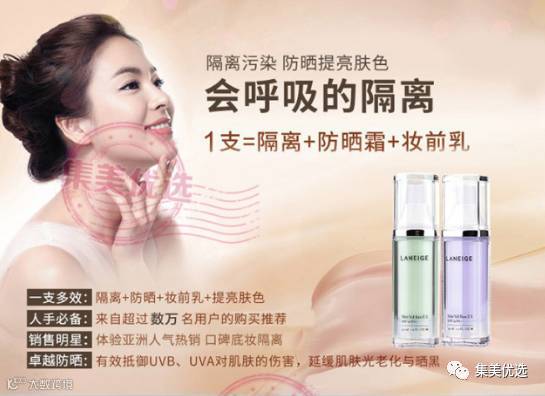 韩国 兰芝雪纱防晒隔离霜 遮瑕保湿防辐射 紫隔绿隔30ml