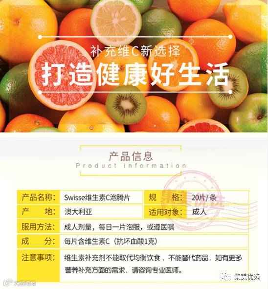 澳洲 SWISSE 维生素C 泡腾片VC草莓味 20片/条 补充日常所需