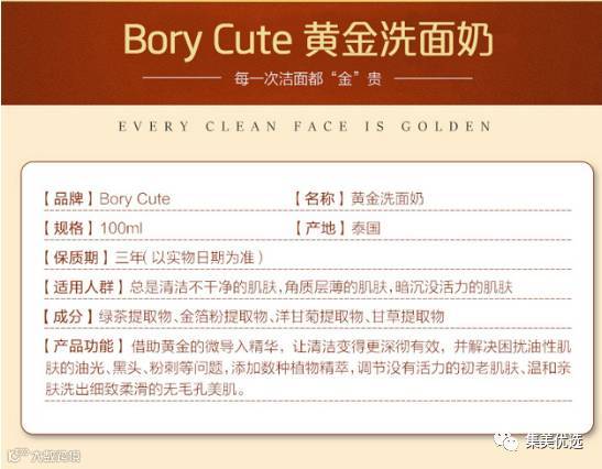 泰国 BORY CUTE黄金洗面奶 去除黑头收缩毛孔美白补水