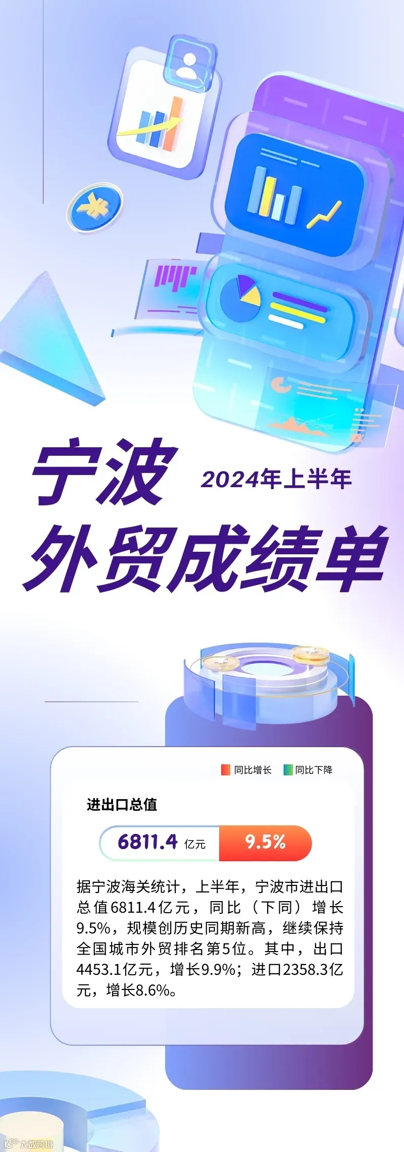 导读:一起来看↓从宁波海关获悉的今年上半年宁波市外贸进出口总值6811.4亿元,同比增长9.5%......
