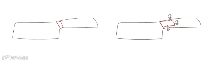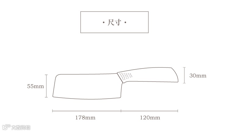 刀形:中式菜刀设计,轻松hold住肉类、熟食、大果蔬等食材。刀尖处圆润打磨,在小细节上照顾到使用者的安全。