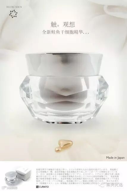 日本的干细胞再生医美技术走在世界的前列,而CURATO公司旗下RECORE SERUM小星星鲑鱼干细胞精华的研发,得到了顶尖生物科技团队和资深教授组的专业支持,多次登上报纸杂志,获得了日本专利大奖。它不仅仅是化妆品,还是护肤品,更是一个美肌再生的机会!鲑鱼干细胞精华既可以当作护肤水和乳液,又可以做唇膜,还可以辅助治疗小baby的湿疹,更可以为准妈妈们的腹部肌肤做延展……完成你意想不到的一切修护功能!