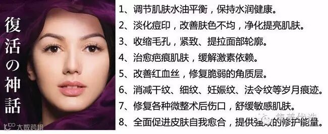 【产品功效】抗敏修复,治愈烫烧伤、疤痕肌肤;祛除妊娠纹、法令纹;祛疤祛痘,改善毛孔粗大问题;补水保湿,增强肌肤弹性;提升皮肤轮廓,紧肤抗衰老。
