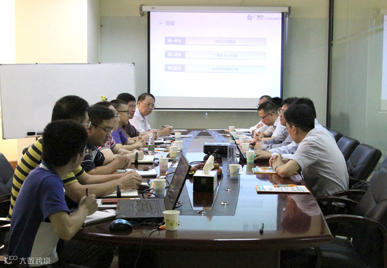 广新集团副总经理兼广新电商公司董事长白明韶、广新电商公司总经理杨剑侠向集成金融集团总裁任晓彦一行介绍了广新达外贸综合服务平台,任总裁对广新达平台表现出浓厚的兴趣,并赞许了广新达外贸供应链金融创新模式。