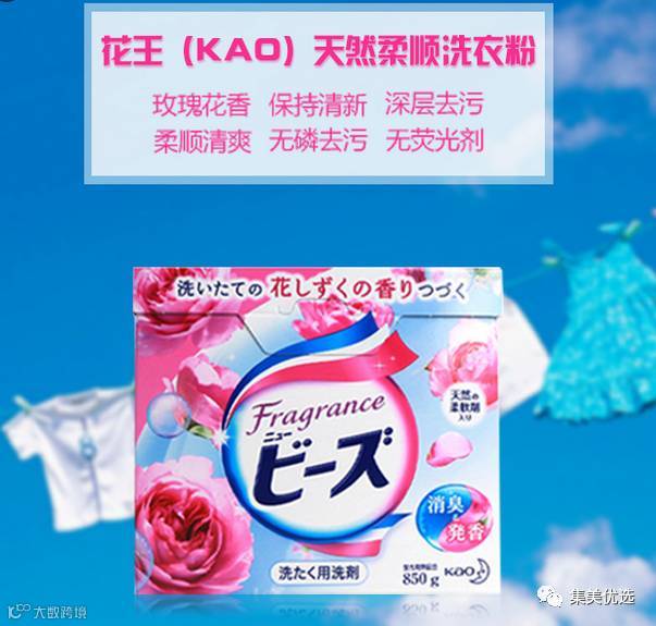 日本 KAO 花王天然柔顺洗衣粉850g*2盒 (玫瑰花香不含荧光)
