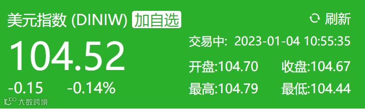 另一边,美元指数则持续拉升。截至发稿,美元指数报104.52,昨收104.67。