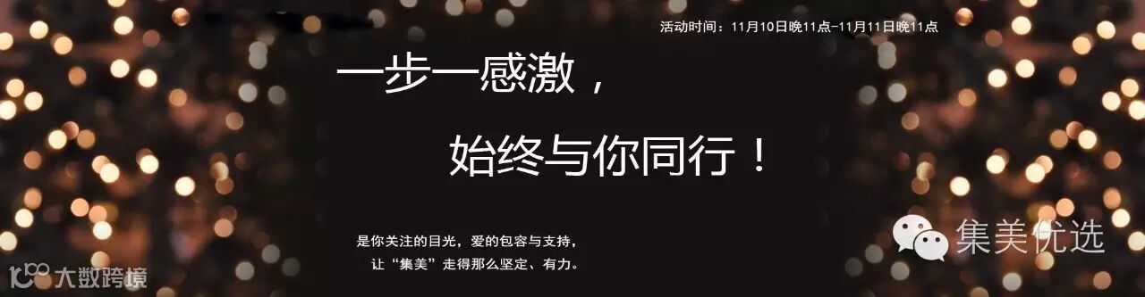 如果双十一是座山,琳琅满目的商品便是山间的风景。如果集美是登山的领路人,亲爱的会员,你们就是最强大的拉拉队和同行军。因为有你,我们愿意去最遥远的峡谷,寻找更美的景色;因为是你,我们敢于跨过最险峻的山峰,将一路上收藏的美好与感动呈现在你眼前。11月11号,当我们终于迎来登顶的巅峰时刻,真庆幸身边有你将双手紧握。