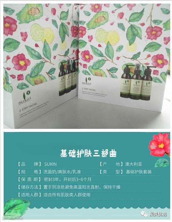 澳洲SUKIN/苏芊基础保湿护肤三件套 洗面奶125ml+爽肤水125ml+乳液125ml套装