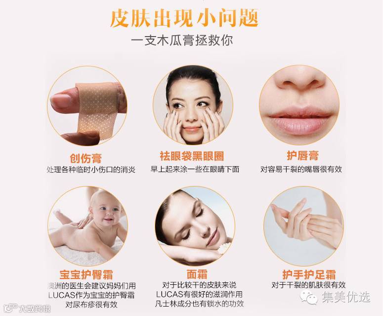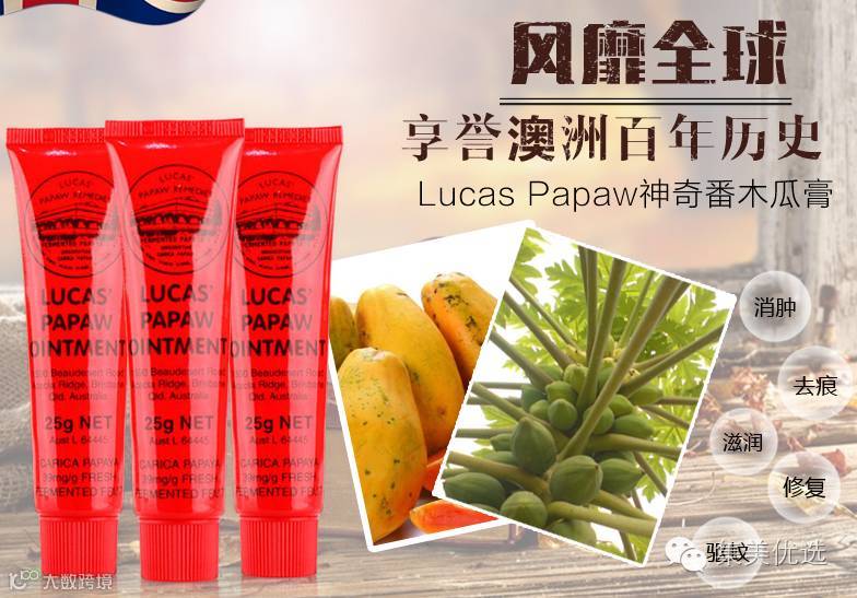 据说澳洲几乎人手一支的木瓜膏,可用来处理轻度烧伤、烫伤、过度日晒,小伤口清洁消炎,蚊虫叮咬,宝宝湿疹、尿布疹,过敏骚痒,还能当护唇膏、护手霜,并对黑眼圈急救等有良效。神奇的万能木瓜膏,纯天然木瓜发酵,吃下去也没事,非常安全,老少皆宜,不折不扣的“万金油”!