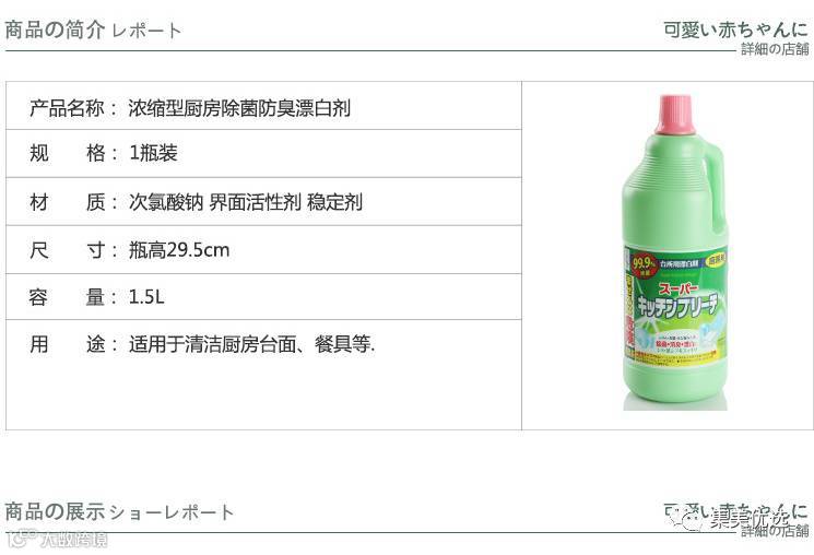 日本进口ROCKET浓缩型厨房除菌防臭漂白剂餐具灶台消毒 1.5L