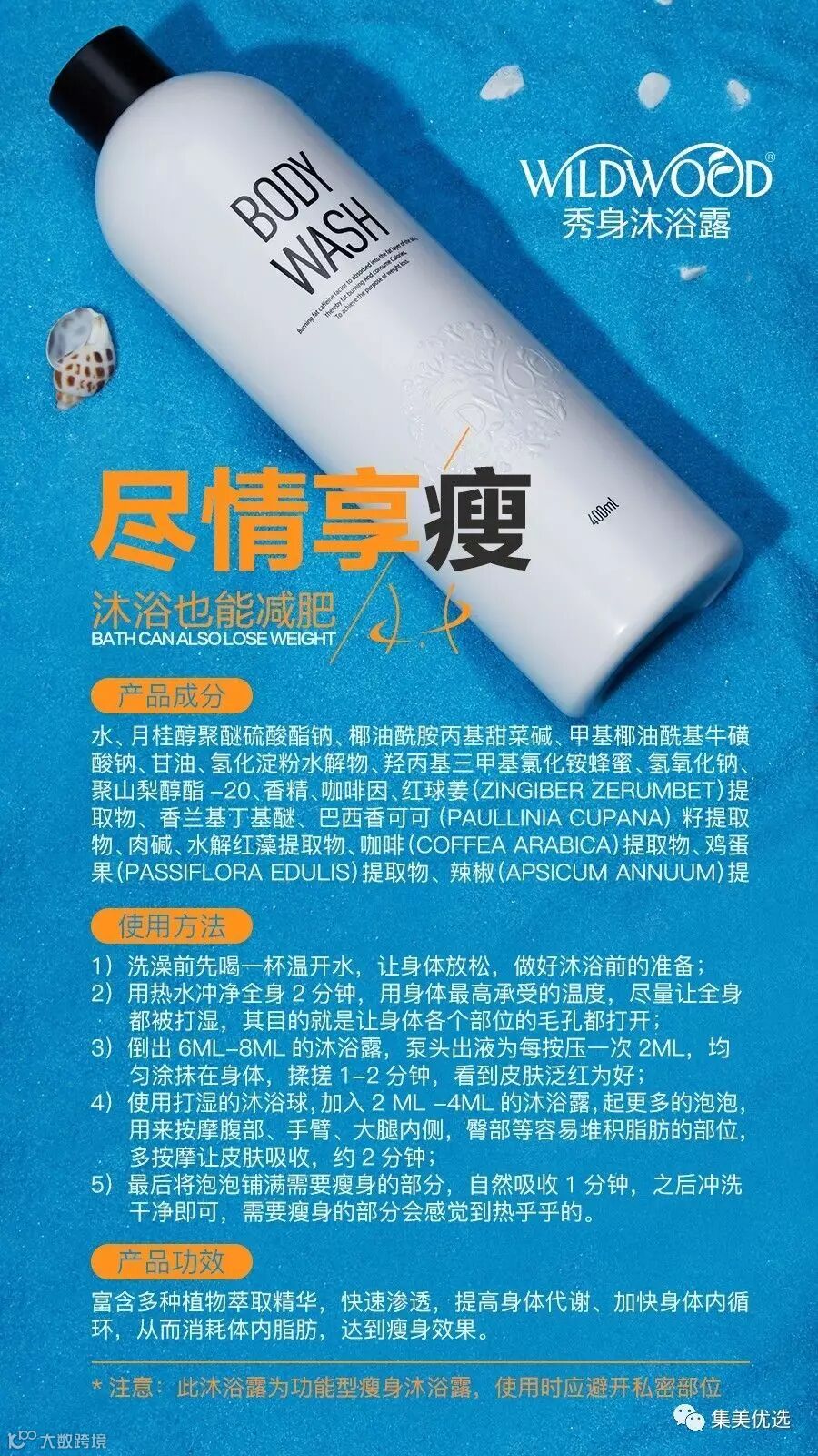 鸡蛋果提取物的作用,众所周知,食用鸡蛋果可以增加胃部的饱腹感,减少余热量的摄入,还可以吸附胆固醇和胆汁之类有机分子,抑制人体对脂肪的吸收。因此,长期食用有利于改善人体营养吸收结构,降低体内脂肪,塑造健康优美的体态。那么现在我们的WILDWOOD瘦身沐浴露将鸡蛋果加入到我们的配方中,也为我们产品在瘦身这个功效上打了一枚强行针。