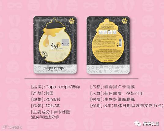 韩国papa recipe黑色春雨蜂蜜面膜10片