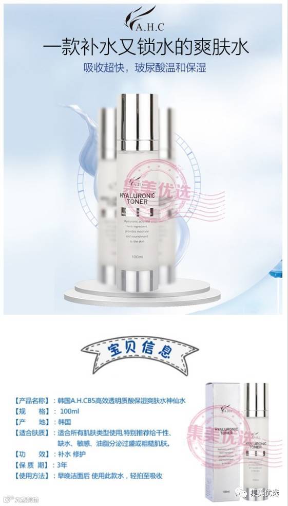 韩国AHC神仙水 玻尿酸水爽肤水补水保湿 100ml