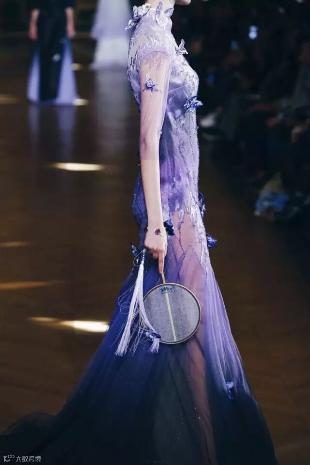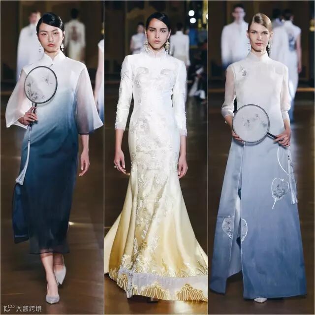 旗袍领、缂丝扇、金丝刺绣,温柔的色调和渐变