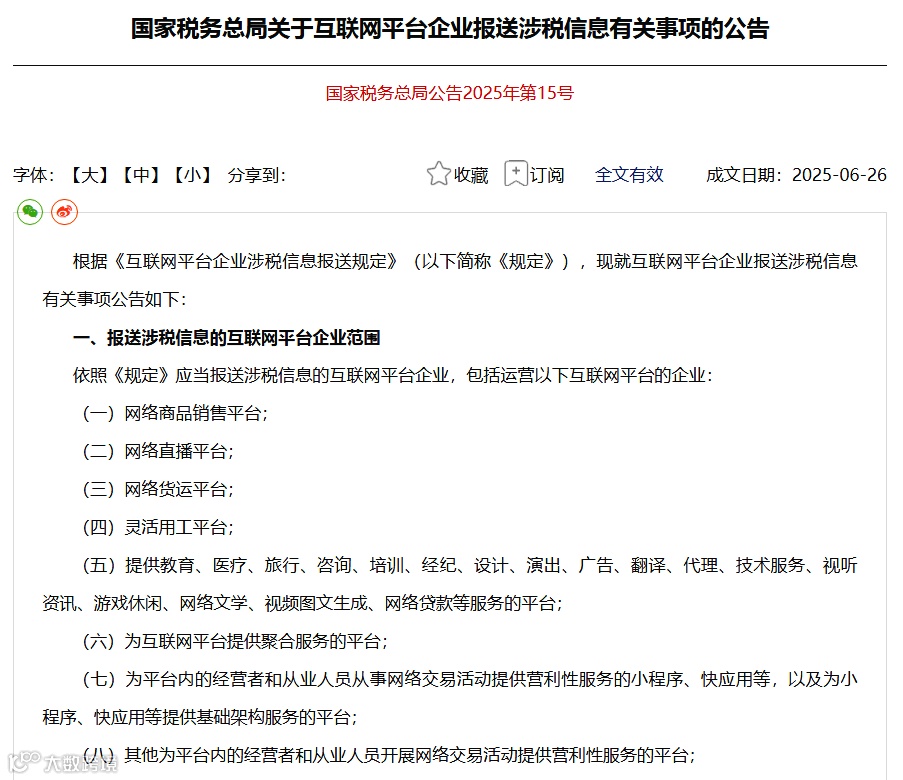 这场席卷全国的跨境电商税务核查风暴,源于2025年6月国务院发布的《互联网平台企业涉税信息报送规定》。该规定要求从10月1日起,无论平台注册地在境内还是境外,只要为中国境内经营者提供网络交易营利性服务,就必须按季度向税务机关报送平台内经营者的身份信息和收入信息。