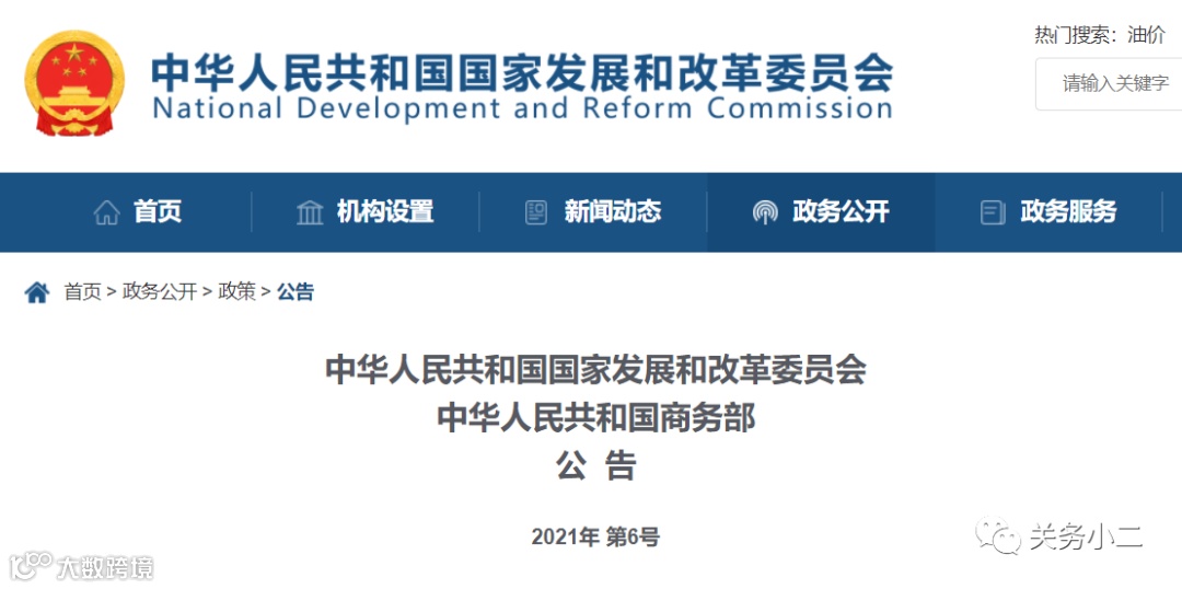 国家发展和改革委员会 商务部公告