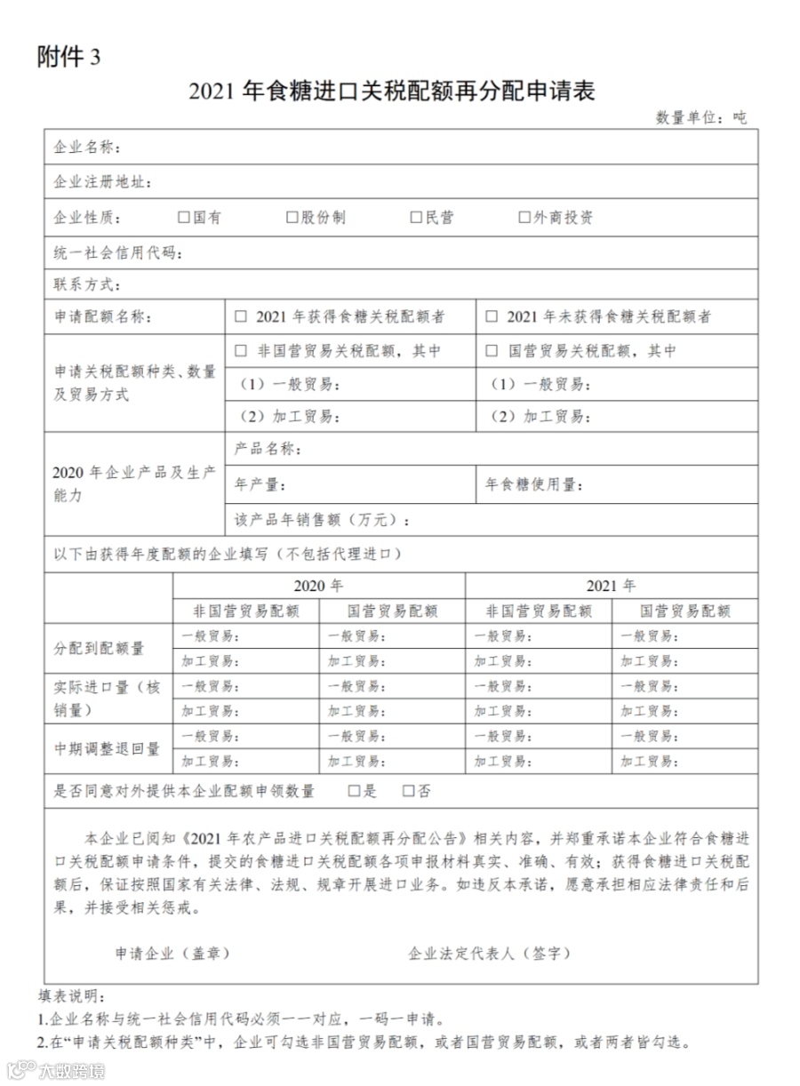 3.2021年食糖进口关税配额再分配申请表
