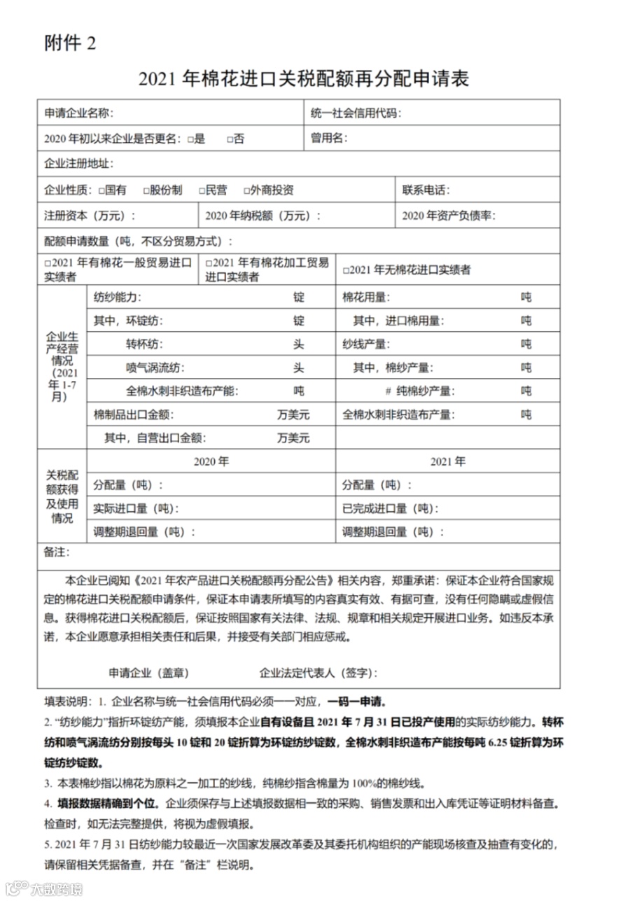 2.2021年棉花进口关税配额再分配申请表
