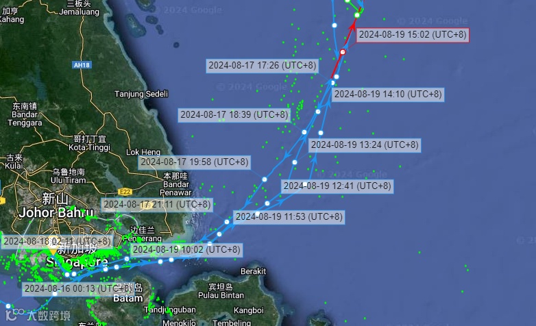 目前,Maersk Campton轮已离开新加坡港,驶向天津新港。