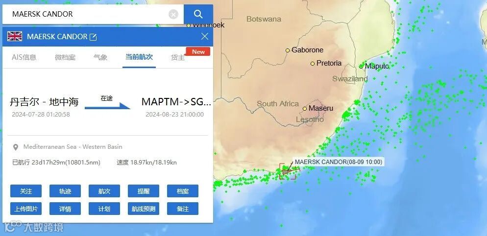 资料显示,集装箱船Maersk Candor轮,建造于2022年,运力为15473TEU,悬挂利比里亚船旗,同样被2M联盟部署在亚洲-地中海航线上(马士基的AE12/TP2航线,MSC的PHOENIX/JAGUAR航线)。