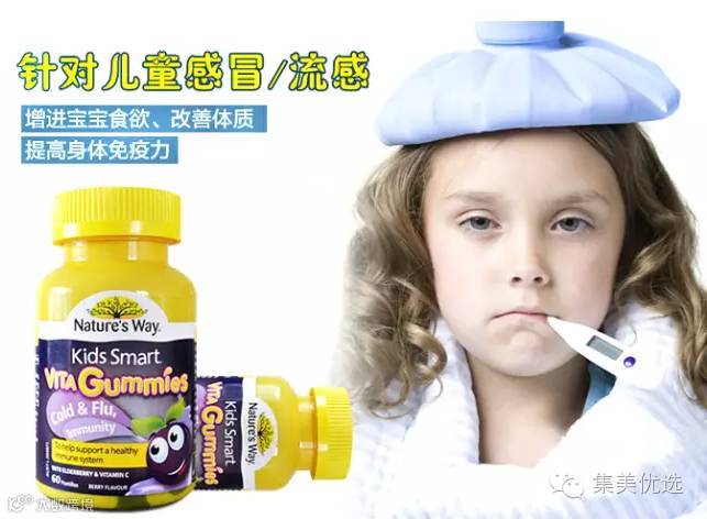 【功效】本款软糖是专门针对流感/感冒和空调病的,非常适合给孩子服用,以增强对病毒的免疫力! Nature’s Way Kids Smart佳思敏维生素儿童软糖含有的接骨木果实、V锌以及VC和蜂蜜能提高宝宝免疫力和帮助宝宝远离感冒。接骨木果实是亮黑色的,具有抗菌消炎,清热解毒的作用;锌是提高免疫力的矿物质;VC是支持身体健康运行的抗氧化剂;蜂蜜是很好的抗菌剂。 瓶盖是安全锁设计(防宝宝偷吃),开盖时要先往下压再顺时针旋开。天气炎热,瓶内糖果可能有软化粘连的现象,介意的顾客慎拍!很多宝宝有挑食的毛病,尤其不喜欢蔬菜,容易缺乏成长所需的维生素。Nature's Way 佳思敏多维果汁软糖含有9种重要维生素及几种蔬菜萃取精华,能为孩子补充所缺的维生素,均衡营养,有助增强体质。