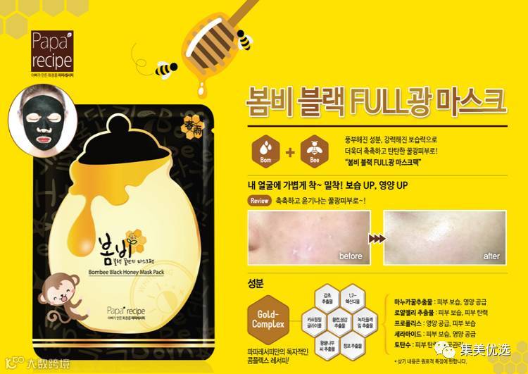 韩国papa recipe黑色春雨蜂蜜面膜10片