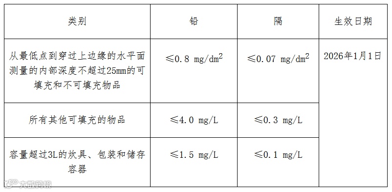 铅和镉迁移限量具体要求如下:
