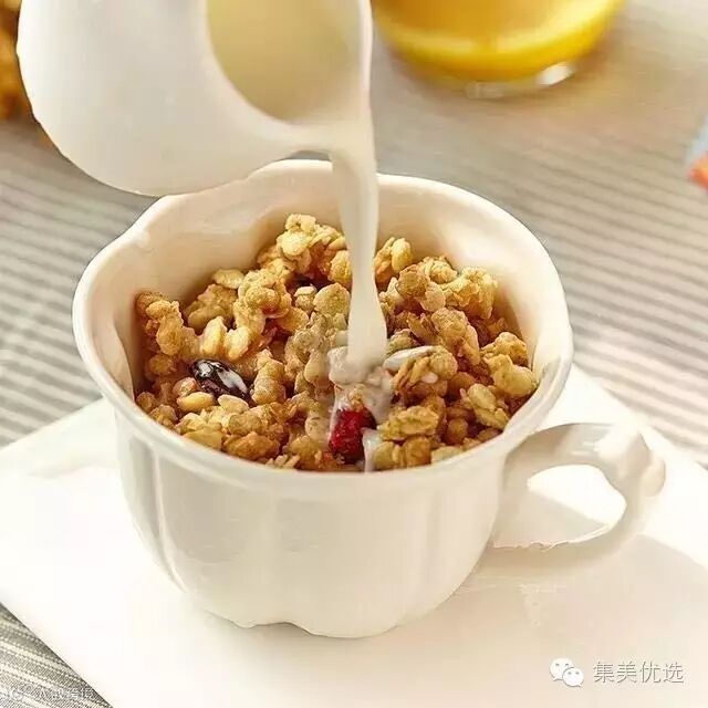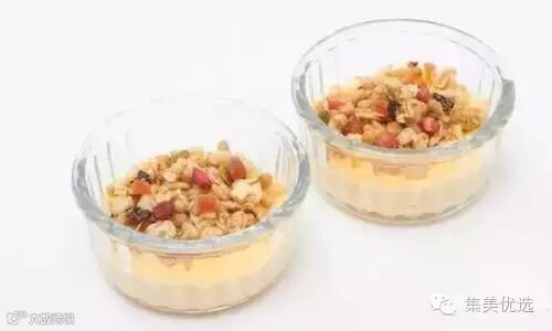 这个也是不少吃货最热衷的吃法,建议选择不那么浓稠的酸奶,而且尽量多泡一会,让麦片尽量吸收酸奶,能冰镇的话那是更好不过的~,酸酸甜甜,好评度超高哦!