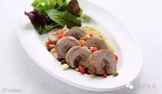1、把猪肉平摊,平均大概1cm厚左右,然后铺上卡乐比麦片,像卷寿司一样卷起来,然后用绳子捆起来。