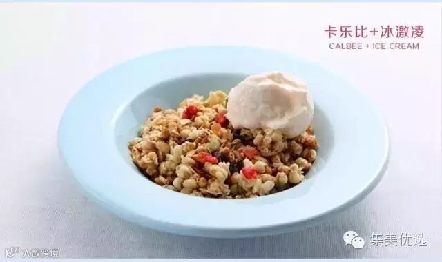 一定要选奶油含量高的(就是比较容易化的那种)冰淇淋,哈根达斯那是再好不过的了~可以在上面撒上卡乐比麦片,也可以自制的时候在冰淇淋中混入卡乐比,冰爽丝滑中偶尔参杂脆脆的谷物和酸甜的果粒,一万个赞!
