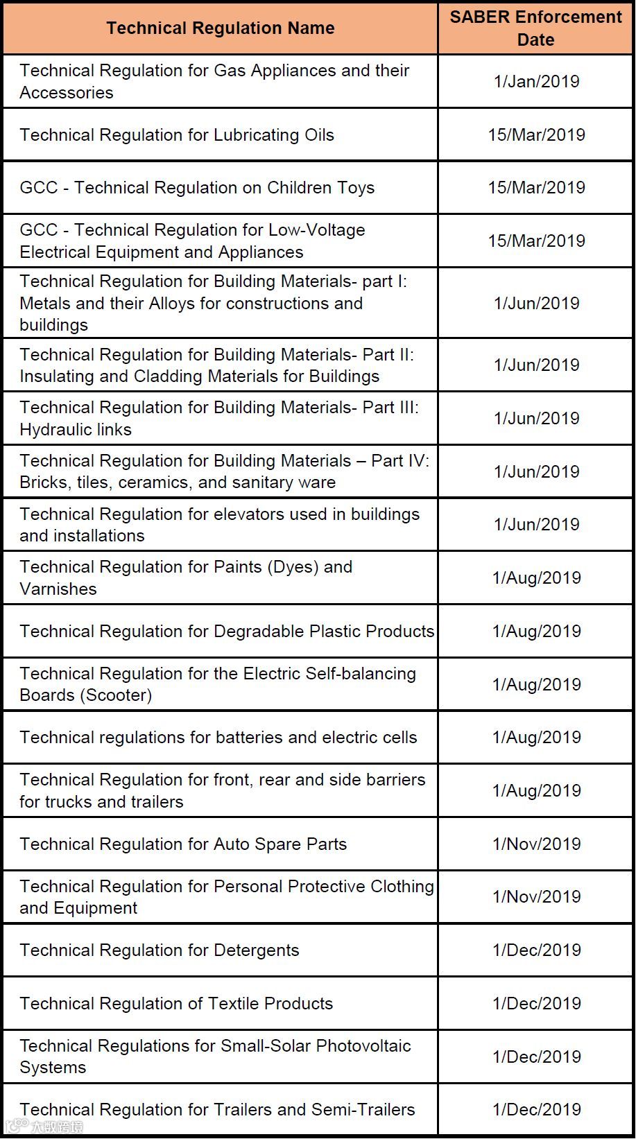 与此同时,以下商品已于今年早些时候,开始实行SABER认证: