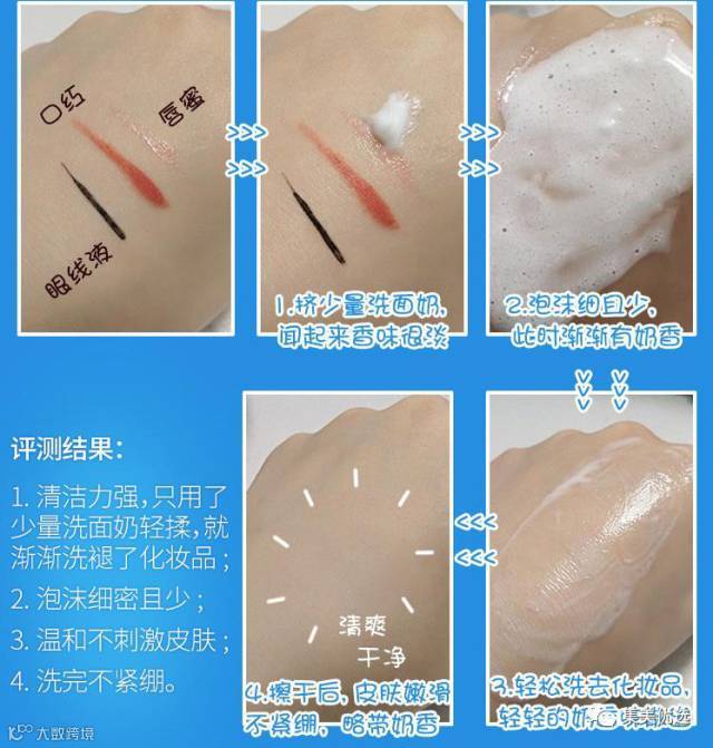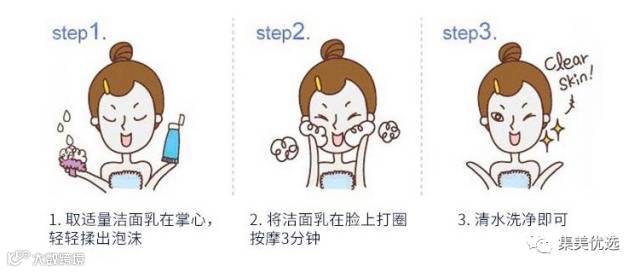 使用方法:挤少许本品于掌心,加水揉搓成泡沫状,用指腹在面部由内向外的方式打圈,稍后用清水冲洗干净