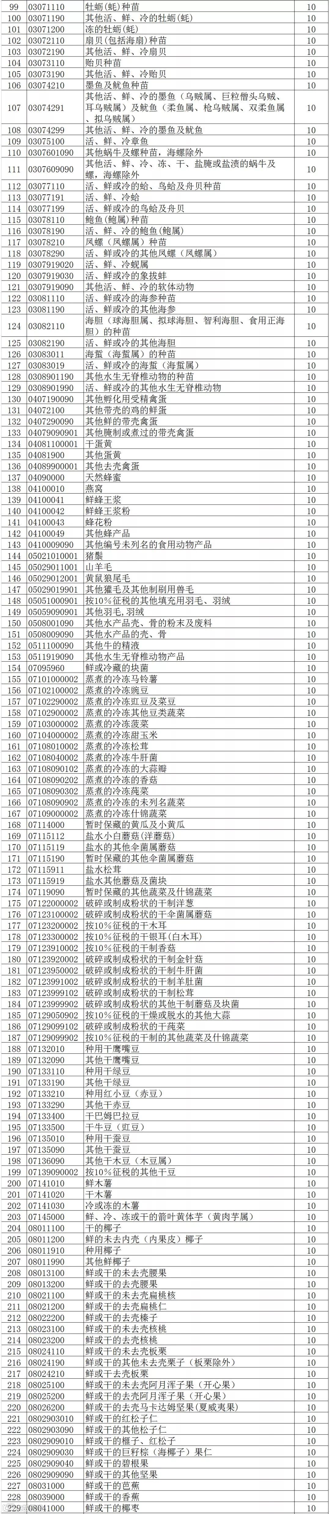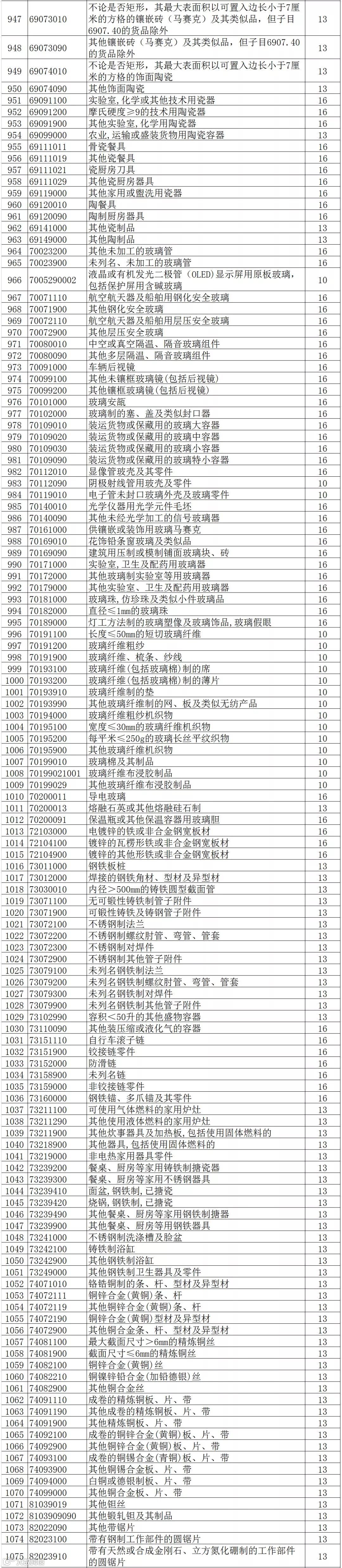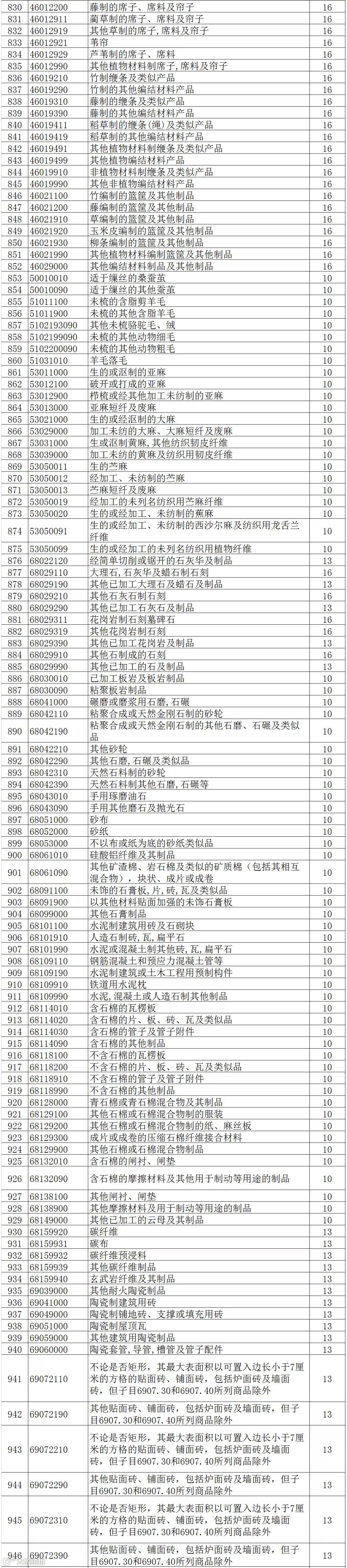 将部分农产品、砖、瓦、玻璃纤维等产品出口退税率提高至10%。