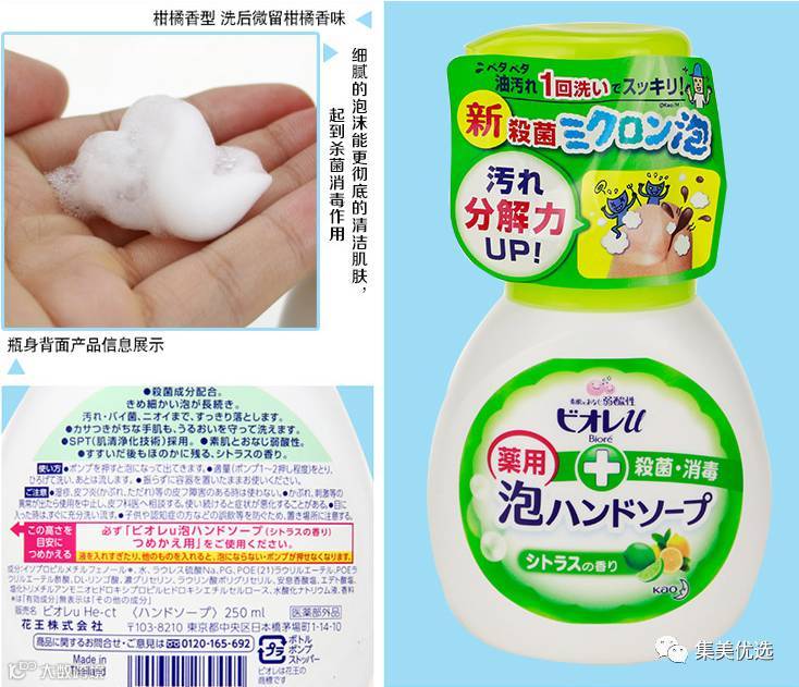 这款在日本的幼儿园、学校都很常见的洗手液,只要轻轻一按,就会喷出丰盈的泡沫,省去了起泡的麻烦,儿童和成人皆可适用。弱酸性配方不刺激皮肤,清洗同时更可滋润双手,留下淡淡的柑橘香味。可以培养宝宝洗手的好习惯。