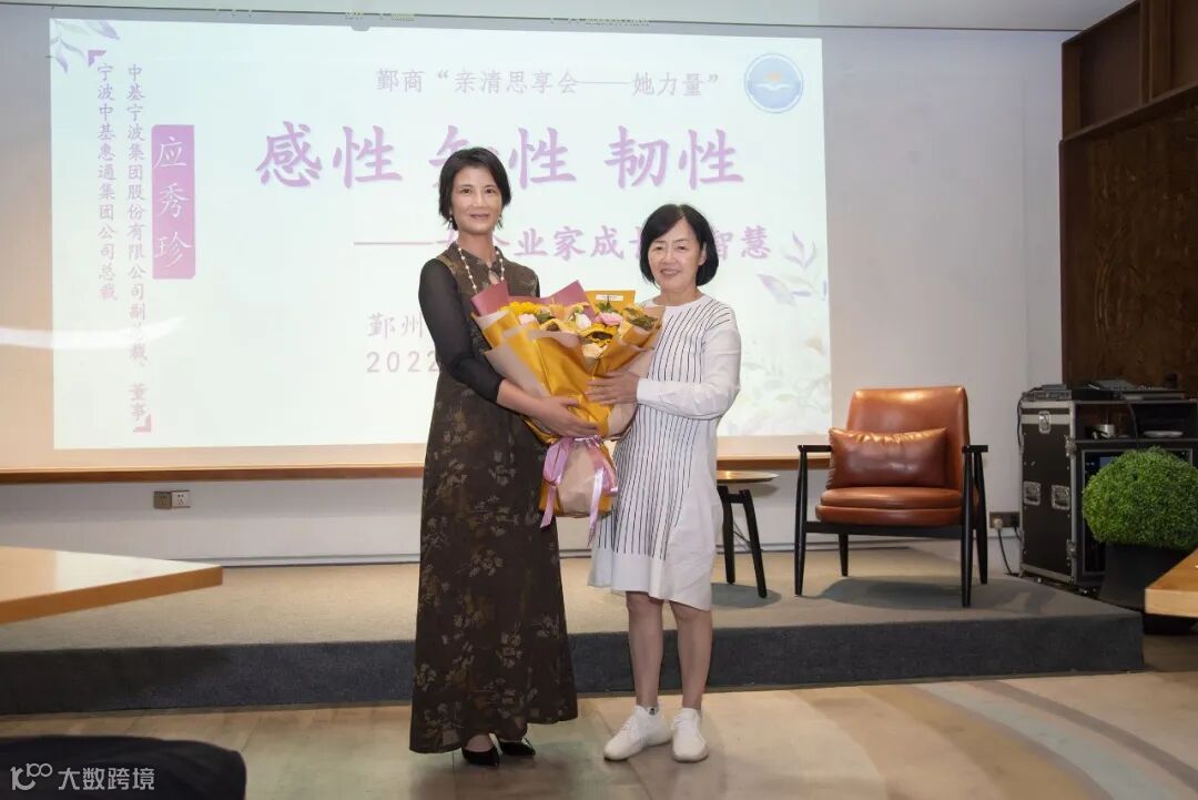 应秀珍首先围绕使命、愿景等多个方面介绍了宁波中基惠通集团股份有限公司相关情况,阐述了中基人如何在逆境中坚守打磨、寻求破局,在探索中拥抱变化、打开市场,在开拓中创新进取、实现跨越等企业发展历程。她在外贸行业深耕40余载,精管理,敢创新,善研判,对外贸形势的变化感知敏锐,参与过胡春华副总理面对面的调研,提及的问题在央视播出。她创建的中基惠通外贸平台服务中小企业1万多家,为服务企业避免收汇风险无偿提供5亿美元的保额;2021该平台出口16.65亿美元,逆势增长40%,通过交流分享让与会企业家深刻感受到了中基辉煌荣誉背后的艰辛奋斗历程和企业家的使命担当。