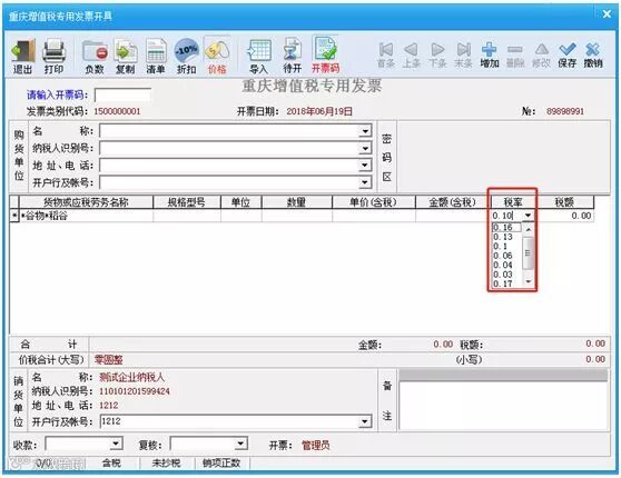 税控开票软件的税率栏次,默认显示的是调整后的税率,纳税人发生上述情况,需要手工选择原适用税率开具发票。