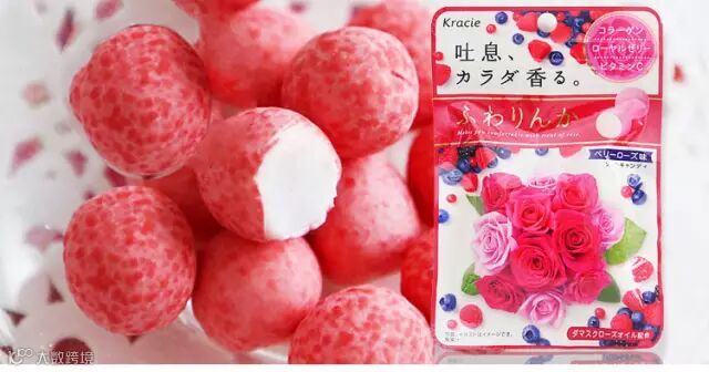 嘉娜宝kracie加入维生素C浆果与大马士革玫瑰精油,胶原蛋白,蜂王浆,维生素C的最新配方。在用餐之后,吃一颗香香的玫瑰软糖,消除用餐后口中不好闻的气味,随时随地拥有迷人气息、保持完美形象!令你著迷的不可思议的软糖!!
