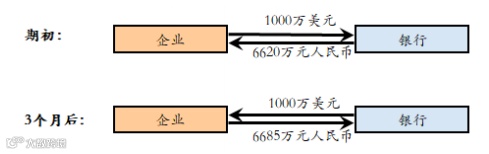 某外贸企业近期收到一笔出口业务收入 1000 万美元, 计划用于国内采购原材料。该企业与银行签订近端结汇、3个月后购汇的掉期结售汇合约,近端结汇价格为 6.6200,3个月后购汇价格为6.6850。掉期结售汇有效满足了企业本外 币资金错配的管理需求。