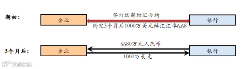 某家电制造出口企业预计3个月后将收到1000万美元销售收入。为做好汇率风险管理,该企业与银行签订3个月远期结汇合约,远期结汇价格为6.6800。3个月后,企业按照6.6800 的汇率在银行结汇,向银行支付1000万美元兑换得到6680万元人民币。如果企业未签订远期合约,则3个月后按照市场价格结汇,如人民币升值到 6.6600,则企业1000万美元销售收入结汇得到6660万元人民币与签订远期合约相比收入减少20万元人民币。企业通过在银行办理远期结汇,提前锁定了收益,规避了人民币汇率升值风险。