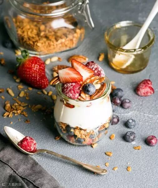 酸奶还是非常好的一种早餐食材,可以根据自己的喜好搭配上新鲜的水果,还可以放一点麦片,然后烤一片面包,一顿精致而健康的早餐就做好了。