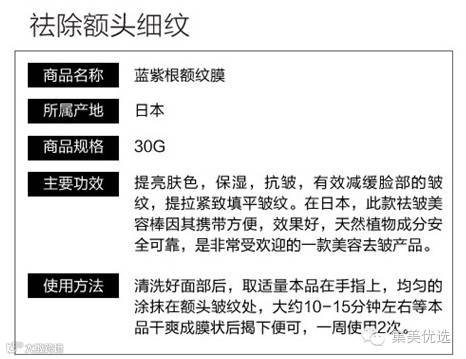 都是抬头纹惹得祸!!!20岁就被叫叔叔阿姨?日本第一去抬头纹膜;蓝紫根去抬头纹膜,淡化抬头纹、川字纹,提拉紧致。日本MM20岁之后都在用的预防和祛除抬头纹神器!不仅要生来漂亮,更要活的漂亮!蓝紫根去纹神器帮你留住20岁!