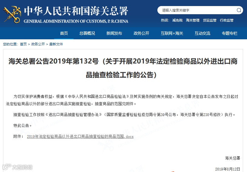 海关总署公告2019年第132号
