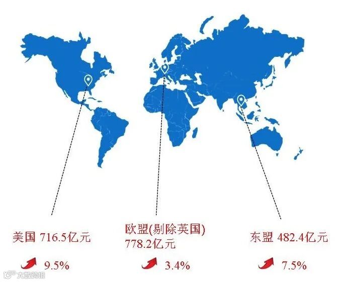 前三大贸易伙伴欧盟(剔除英国)、美国和东盟,进出口合计占同期宁波市进出口总值45.9%,比去年同期提升3.1个百分点。