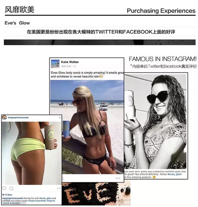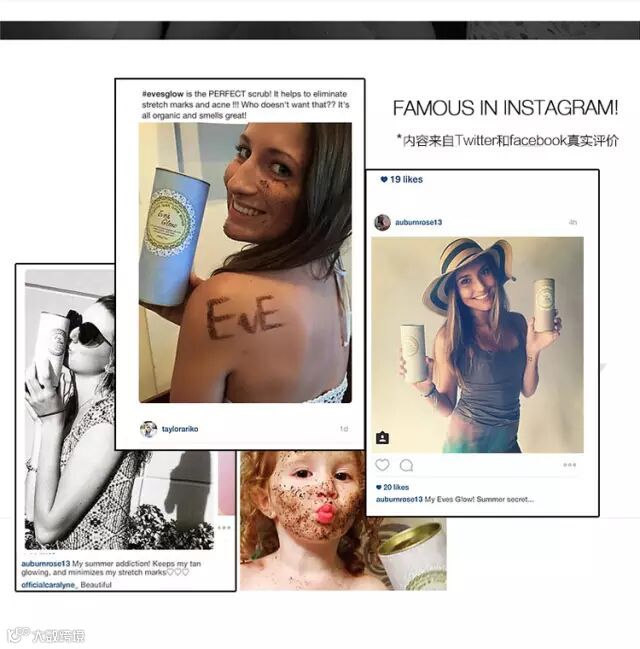 Eve's Glow的品牌代言人是曾参加过美国超模大赛的美国超模超模BettaLemme,拥有名人代言,明星效应,产品更有保障。