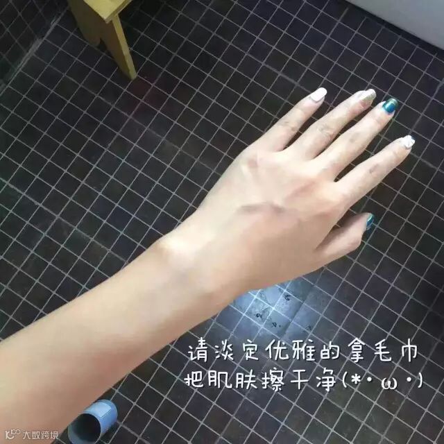 2.倒出适量在手掌(切记:用倒的方法,不要用手去挖,以免将水带入包装,影响后续使用)