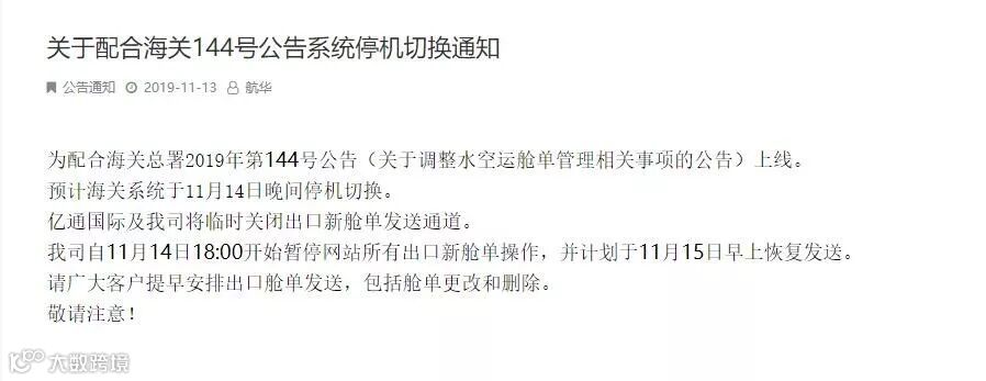 出境航空器,在开始装载货物、物品的4小时以前发送