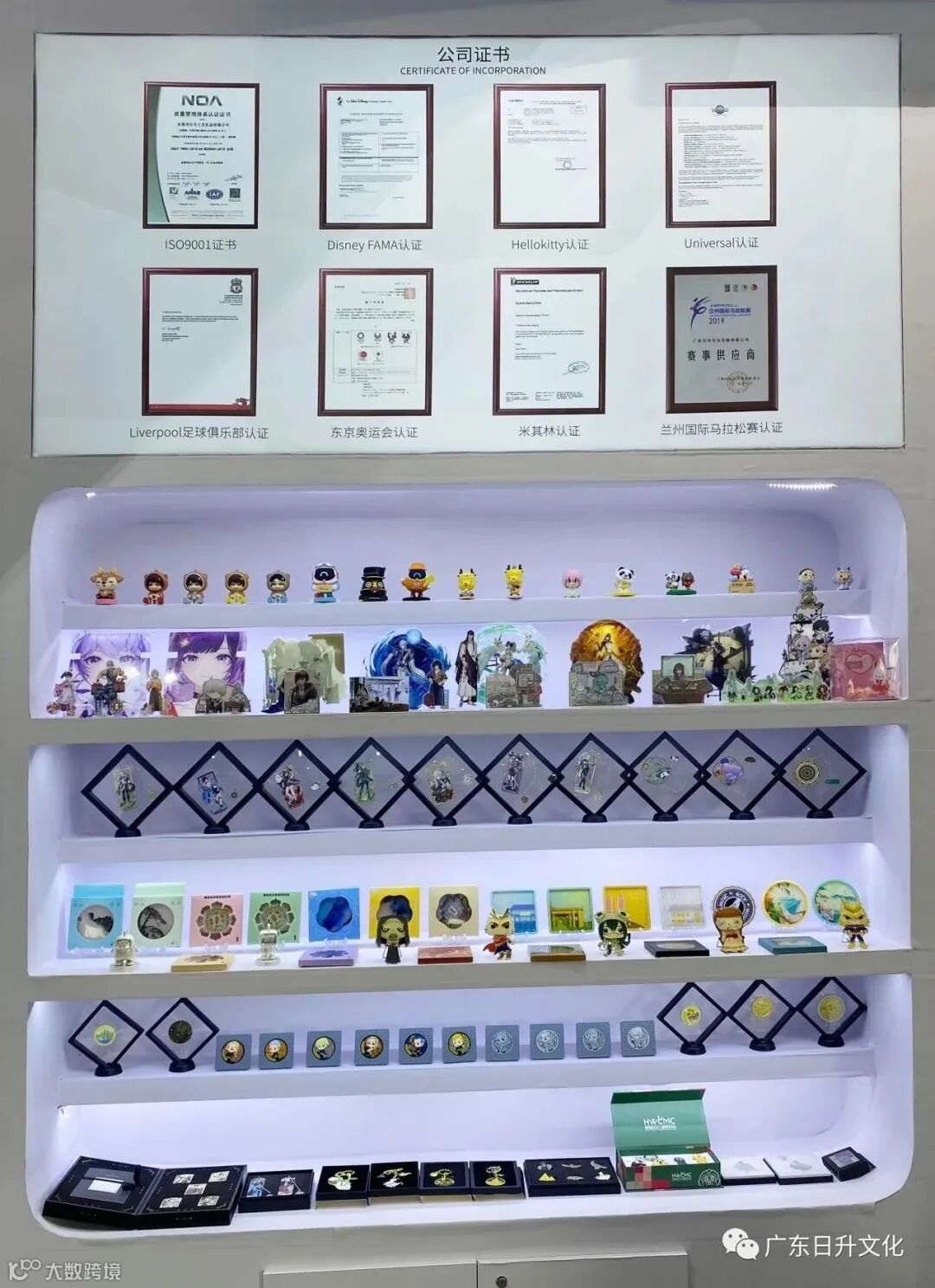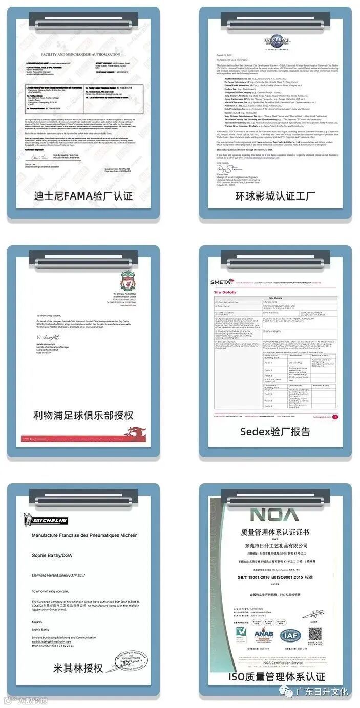 日升企业始于2004年,产品广泛应用于各类赛事、动漫游戏周边和文创周边等多个领域。日升凭借精湛的工艺、卓越的品质与迪士尼、环球影城、可口可乐、星巴克、米哈游、网易等建立友好战略合作关系,同时也取得了ISO认证、Sedex认证、迪士尼认证、环球验厂认证、可口可乐认证等相关认证和授权。