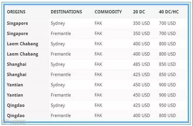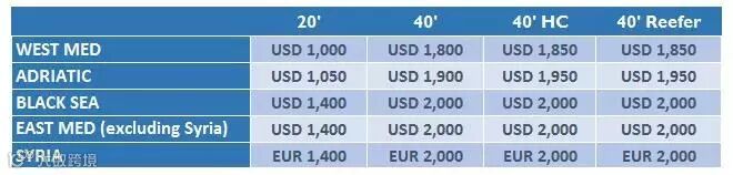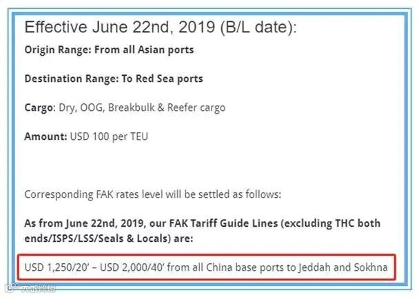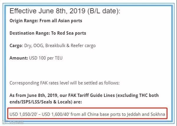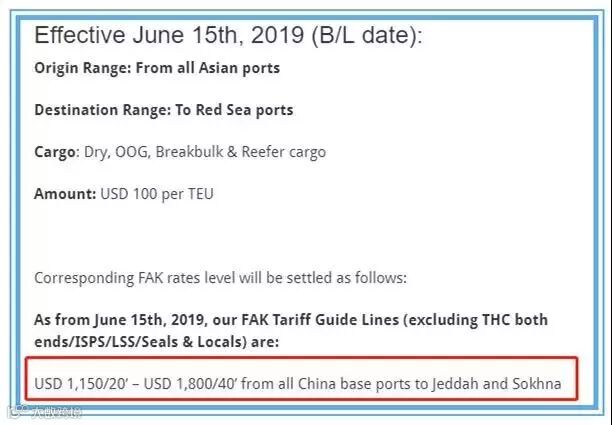 自2019年6月15日起,我们的FAK费率(不包括THC both ends/ISPS/LSS/Seals & Locals)为:
