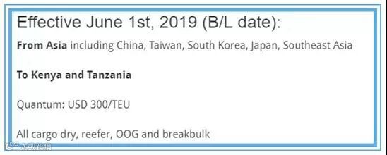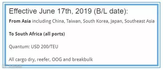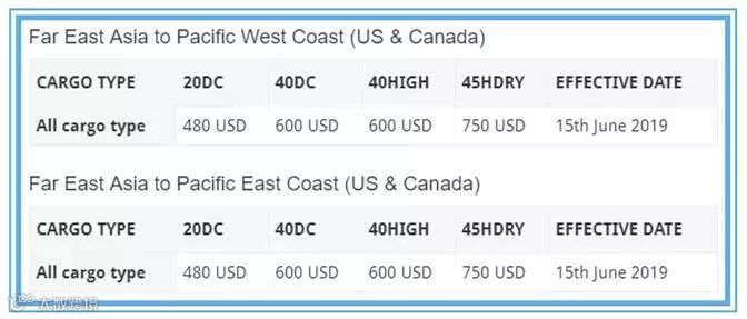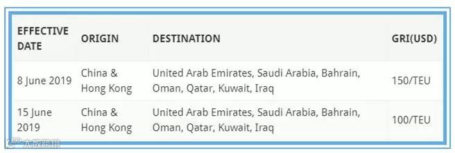 新费率自2019年6月1日起生效(原口岸装货日期),直至另行通知(但不超过2019年6月15日)。
